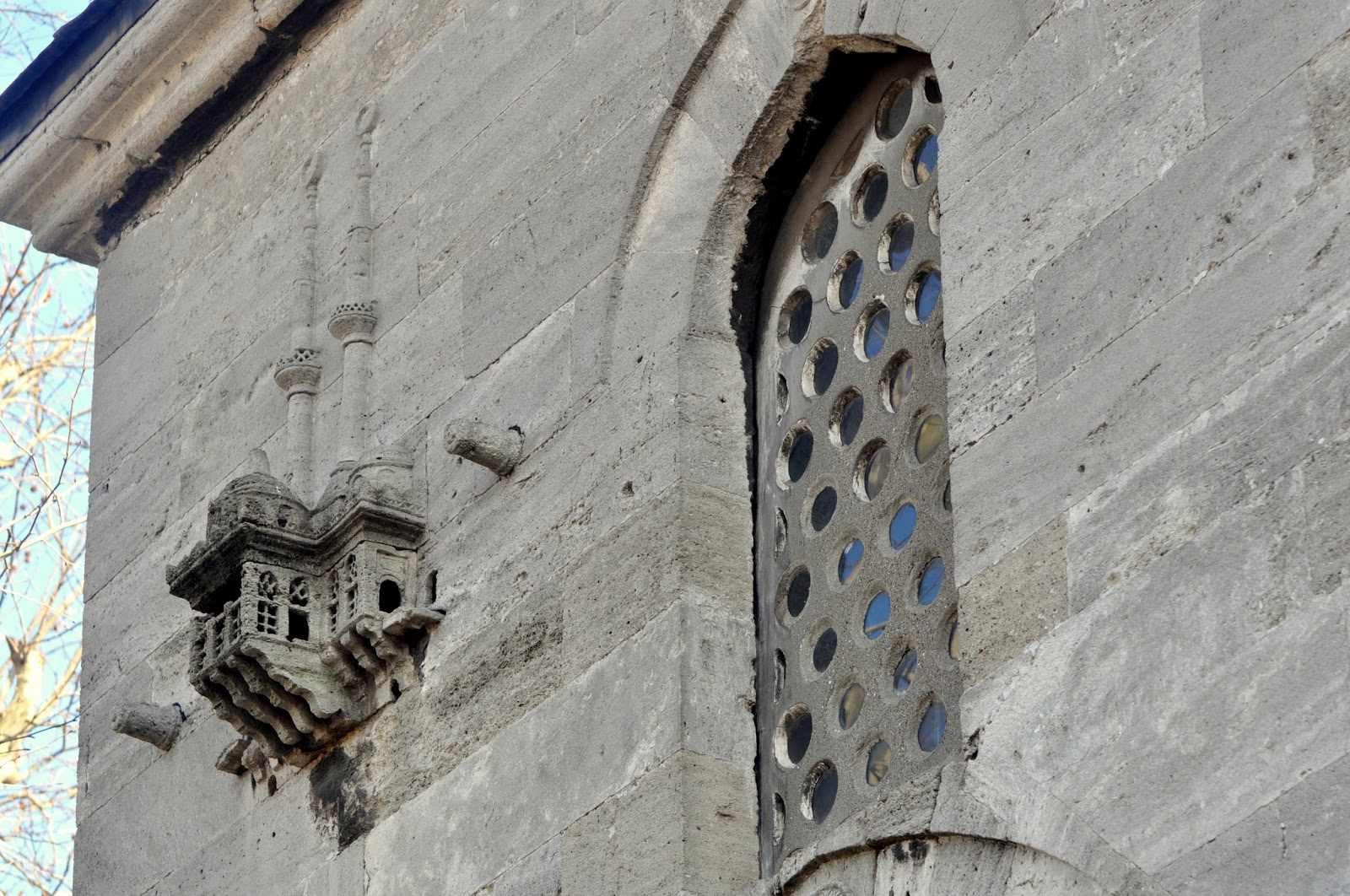 Caminin avlusuna açılan doğu kapısının üzerinde bu caminin orijinal minyatür mermer motifi avlu duvarına işlenmiştir.